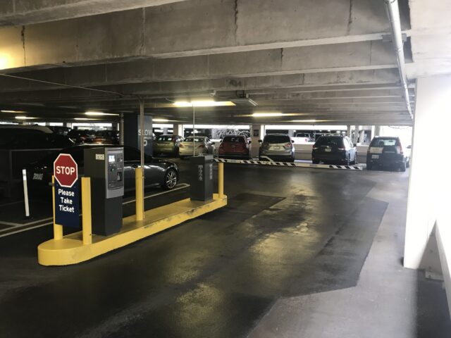 This facility has entrances and exits that are located on SW Jefferson between SW 1st & 2nd Ave across the street from The Portland Astoria Apartments and Koin Tower, between Auditorium Cleaners and CityKids Daycare. The first entrance on SW Market is located between SW 1st & 2nd Ave across the street from 1st & Jefferson SmartPark entrance. Each entrance and exit has a driveway ramp from the street into where the garage/building begins. Prominent Blue, White and Red ‘Columbia Square’ sign can be found at the entrance/exit as well as Parking NW logos posted at the signage inside. Clearance bar hanging immediately in the entry/exit driveway instructs which side is the entrance and and exit. The entrance is the first driveway as you drive up Jefferson St (one-way) and the second driveway, where there is an attendant booth alongside, is the exit lane.